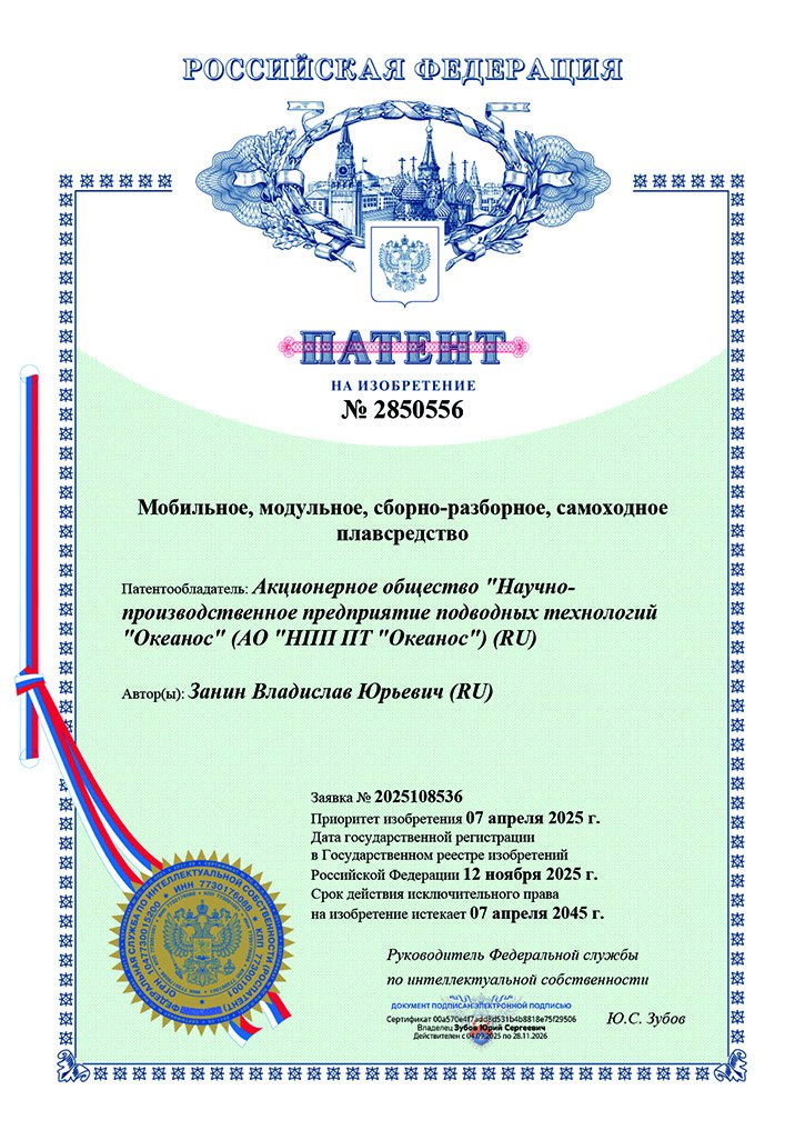 Компания «Океанос» официально получила патент на морской робототехнический комплекс для гидрографических, геофизических и экологических задач на предельном мелководье — МРТК «Лоцман». Решение разработано как мультисервисная система для работы в сложных прибрежных акваториях, где традиционные средства ограничены по манёвренности и риску повреждений.